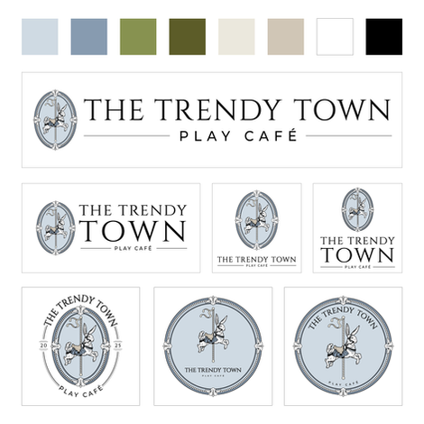The Trendy Bunny is a family-friendly business in Greensburg, PA, with three locations: a boutique play café, an event café, and the new Trendy Town play café opening in 2025. I was hired to create a whimsical, elegant logo for the new location that combined a bunny and a carousel with a Victorian storybook feel. The logo was so well-liked, I rebranded the entire company to match.